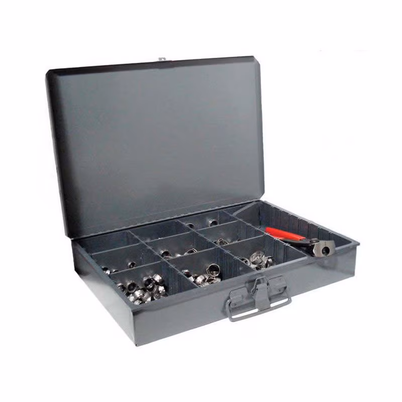 - Metal box dimensions 13" x 10" x 2" with Movable plastic dividers